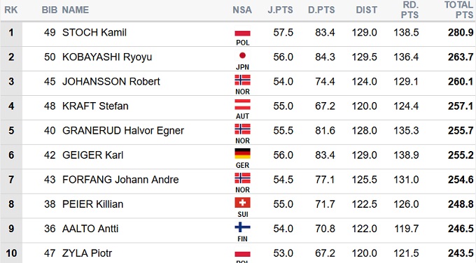 Поляк Камил Стох одержал победу в личном старте на этапе Кубка мира по прыжкам с трамплина в Лахти. Он на 17,2 балла опередил лидера Кубка мира Рёю Кобаяси.
