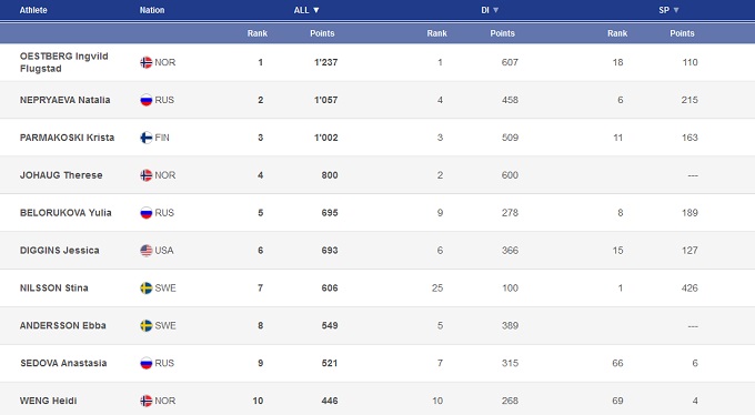 Впрочем, фавориткой в борьбе за МХГ в спринте все равно остается Нильссон. Если ее участие в чемпионате мира под вопросом, то к завершающей части сезона она уже точно должна восстановиться. А тот факт, что на данный момент Нильссон, одержавшая в середине нынешнего сезона четыре победы подряд, остается лучшим спринтером мира, ни у кого не должен вызывать никаких сомнений.
