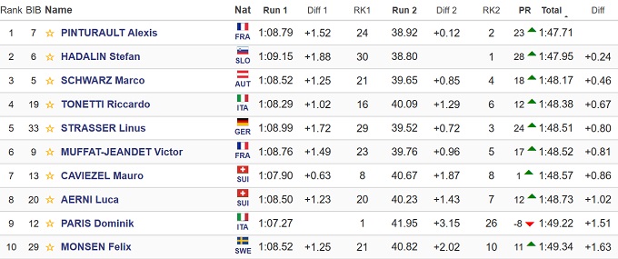 Золото завоевал француз Алексис Пинтуро, который опередил словенца Стефана Хадалина и австрийца Марко Шварца.