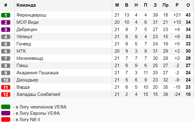 В стартовом матче 21-го тура чемпионата Венгрии лидер, «Ференцварош» Сергея Реброва, на выезде уступил «Дебрецену» - 1:2.