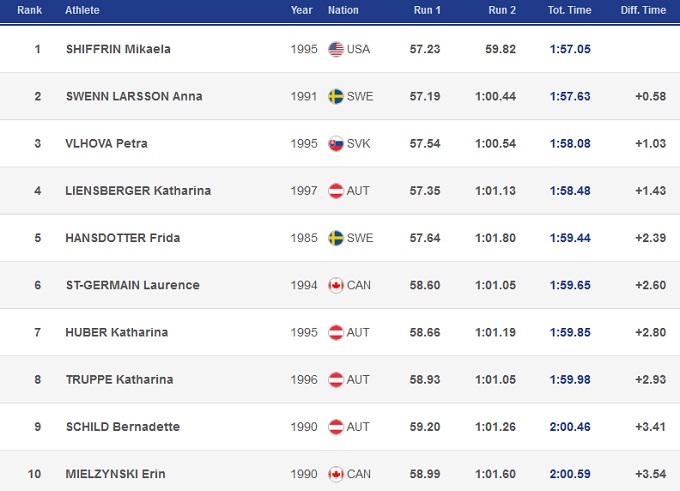 Американка в борьбе за победу опередила хозяйку соревнований Анну Свенн Ларссон о Петру Влхову, которая ранее завоевала золото в гиганте.
