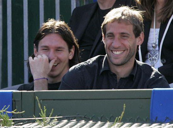 В качестве разрядки после поражения в полуфинале лидер «Барселоны» Лионель Месси пошел на теннис. Как раз Barcelona Open, да еще Рафаэль Надаль играет. Чтоб нескучно было, Месси взял с собой Пабло Сабалету из «Эспаньола». Это доказывает, что футболисты враждующих команд могут дружить, в особенности если они соотечественники.