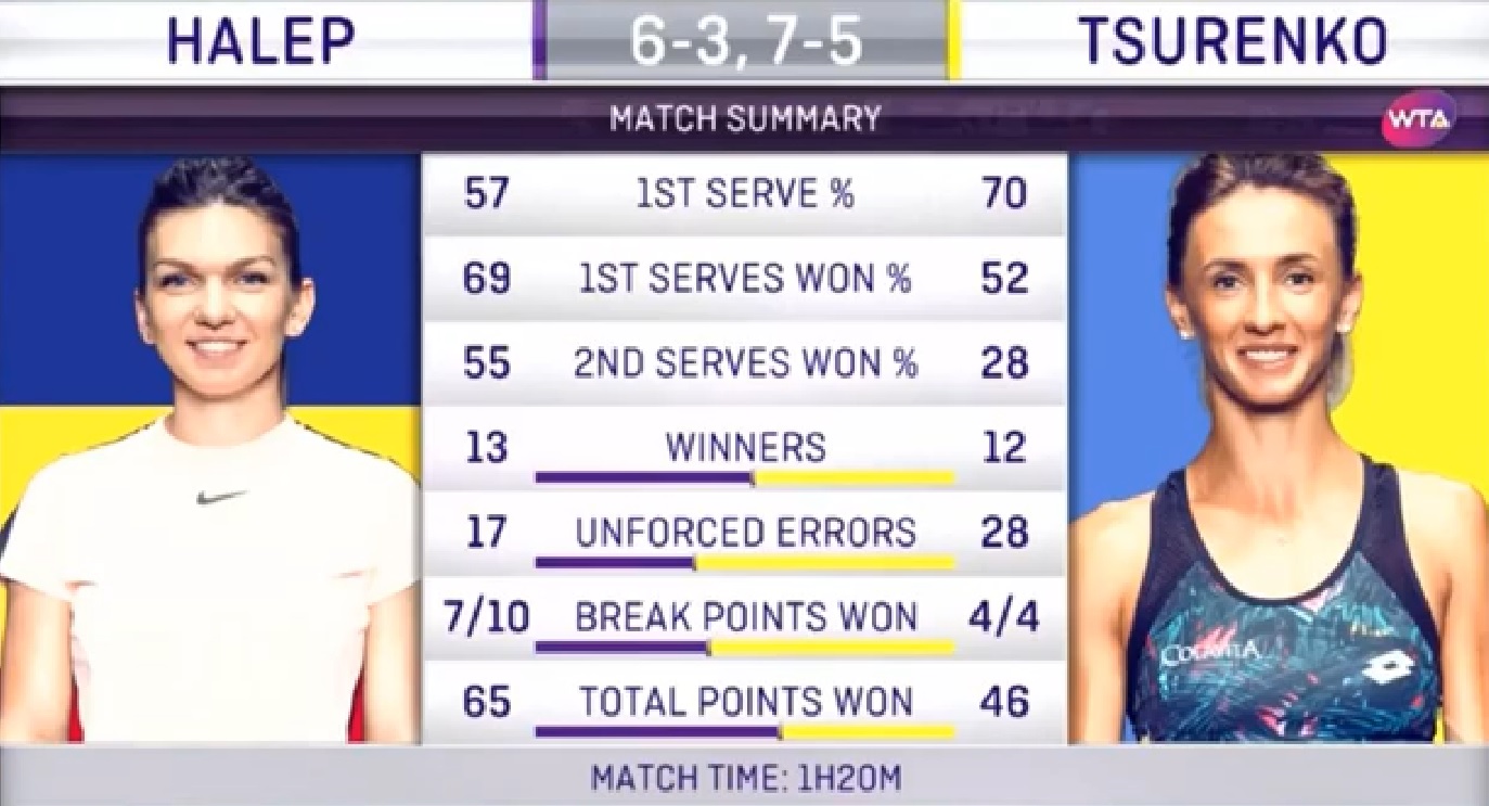 Леся Цуренко (Украина) – Симона Халеп (Румыния) – 3:6, 5:7