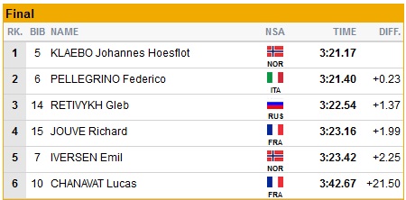 У мужчин золото завоевал норвежец Йоханнес Клэбо, опередивший предыдущего чемпиона мира в этом виде программы Федерико Пеллегрино и россиянина Глеба Ретивых.