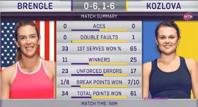 Катерина Козлова (Украина) – Мэдисон Бренгл (США) – 6:0, 6:1