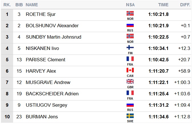 трійка призерів визначилась задовго до фініша і розіграла захоплюючий фініш-ветеран Сундбю зарано рвонув не зміг втримати першість