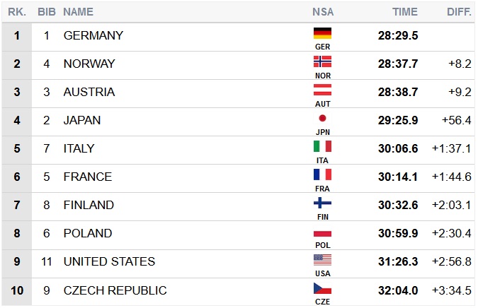 Сборная Украины после 12-го места на трамплине стала круговой во время гонки и была снята с дистанции.
