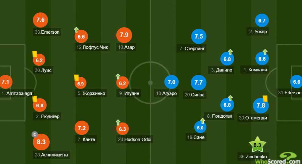 Отметим, что вторую оценку (8,25) в матче заслужил правый защитник «Челси» Сесар Аспиликуэта.