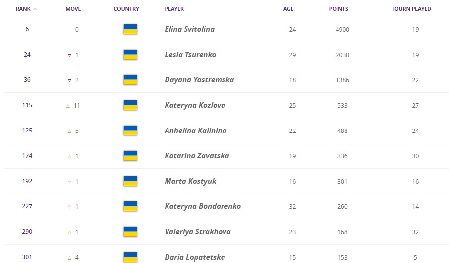 Лидеры сборной Украины Леся Цуренко и Даяна Ястремска потеряли одну и две позиции соответственно.