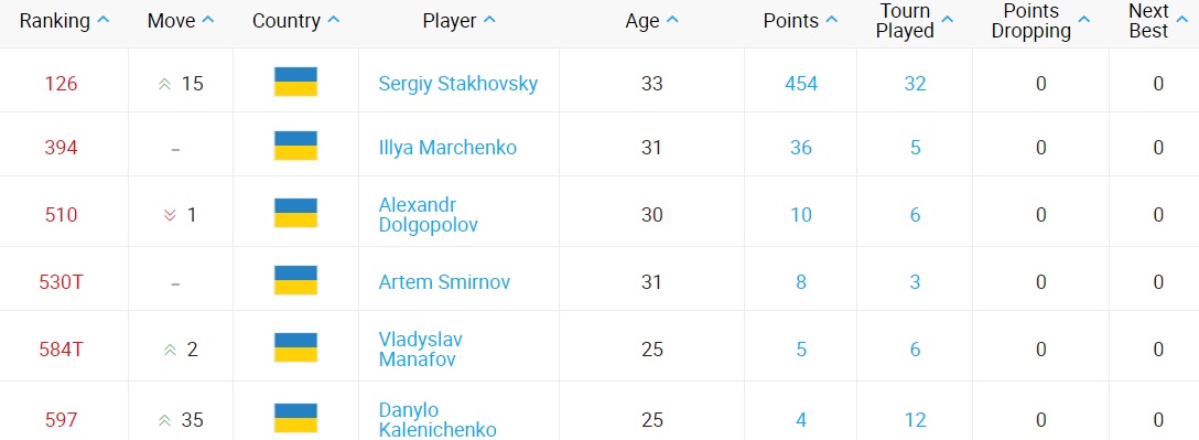 Выход в четвертьфинал турнира в Марселе позволил Сергею Стаховскому подняться на 126-ю позицию в рейтинге АТР.