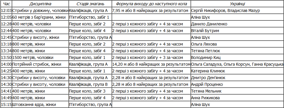 Розклад виступу українців у перший день чемпіонату Європи у приміщенні