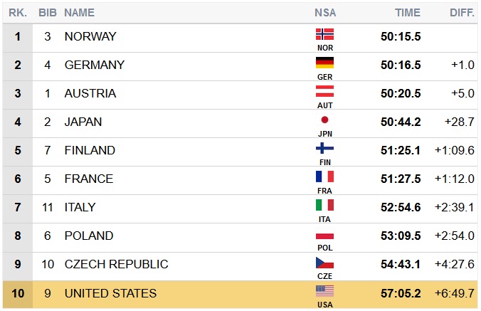 Золото завоевала сборной Норвегии, опередившая действующих чемпионов, немцев, и хозяев – сборную Австрии.