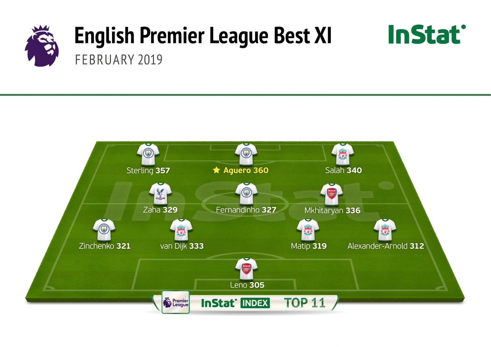 Всего в команде февраля по четыре игрока «Манчестер Сити» и «Ливерпуля», два из «Арсенала» и один из «Кристал Пэлас».