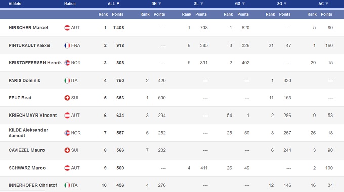 В целом стоит отметить, что под конец сезона результаты в скоростных дисциплинах стали более предсказуемыми, и лидирующие позиции разбирает исключительно элита. Если бы такая же расстановка сил сохранялась в течение всего сезона, то кто-нибудь из скоростников наверняка мог бы побороться с Алексисом Пинтуро и Хенриком Кристофферсеном за вторую строчку в Кубке мира. Хотя у Париса шансы ворваться в топ-3 еще остаются.