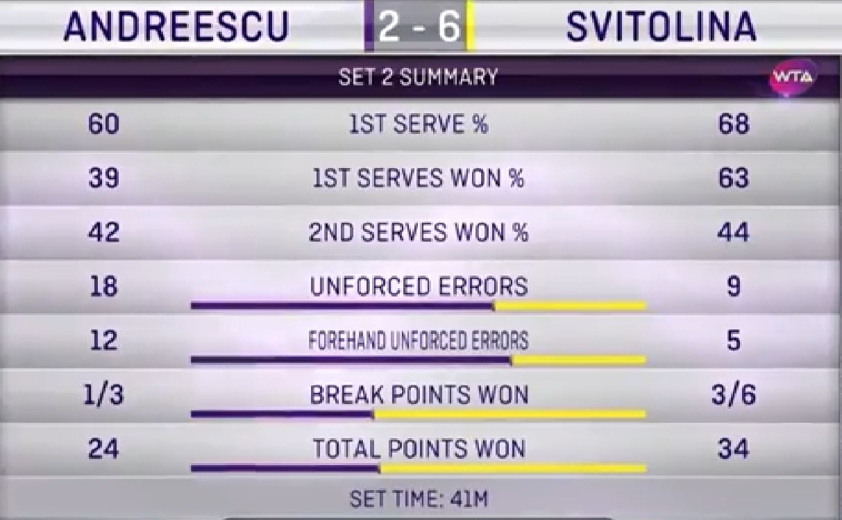 Будущее у Андрееску вырисовывается светлое и радужное, играет она в отличный теннис. Но если бы Свитолина смогла подойти к этому поединку полностью готовой физически и психологически, результат был бы другой.