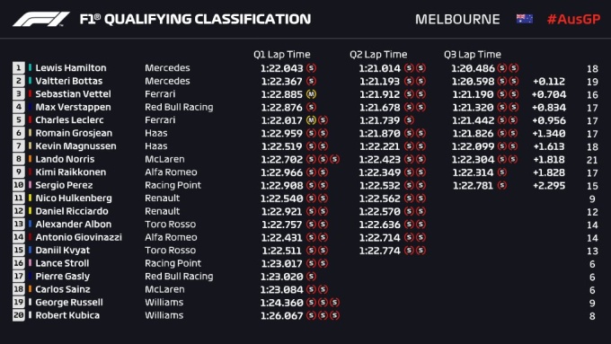 Впрочем, в решающей попытке Хэмилтон все же опередил Боттаса на 0,1 секунды и выиграл свой 6-й подряд поул в Австралии.