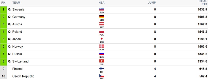 Сборная Словении с братьями Петером и Доменом Превцем, Тими Зайцем и Анже Семеничем в составе выиграла командный турнир на полетном трамплине в Викерсунде.