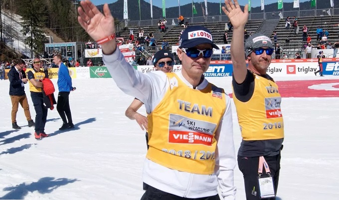 Поэтому, все прекрасно понимали, что этап в Планице для Хорнгахера станет последним во главе сборной Польши. И прощание получилось триумфальным: в субботу поляки довольно неожиданно выиграли командный турнир. Даже Камил Стох, который в концовке нынешнего сезона был лишь бледной тенью самого себя, сумел собраться и выдал две топовые попытки. Субботняя победа также по сути гарантировала Польше второй за три года правления Хорнгахера Кубок Наций..jpg)