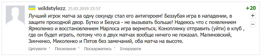 А вот в главные антигерои матча записали Евгения Коноплянку. Ему достались больше всех.