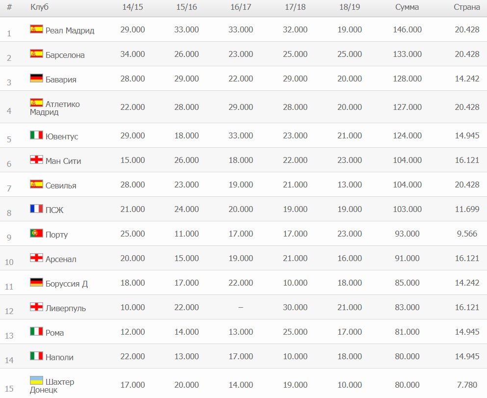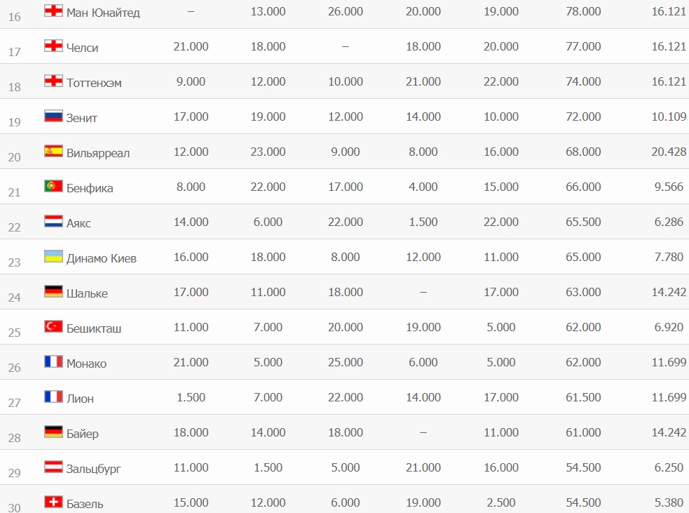 «Шахтер» пока занимает 15-е место, но еще может опуститься вниз. Обойти «горняков» могут три английских клуба: «Челси», «Манчестер Юнайтед» и «Тоттенхэм». Отметим, что лучшим достижением для «Шахтера» была 13-я позиция в клубном рейтинге УЕФА.
