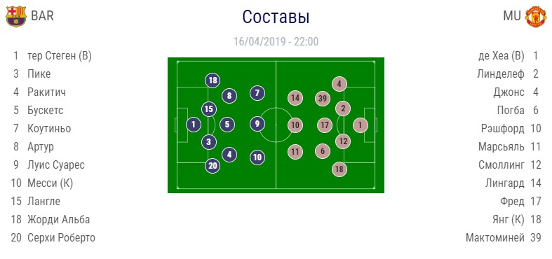 В первом четвертьфинальном матче испанский клуб на «Олд Траффорд» переиграл «Манчестер Юнайтед» со счетом 1:0. Каталонцы продолжают уверенно лидировать в Ла Лиге, опережая «Атлетико» на 9 очков за 6 туров до финиша. «МЮ» в Английской Премьер-лиге набрал 64 очка и занимает 5-е место, на два очка отставая от зоны ЛЧ.