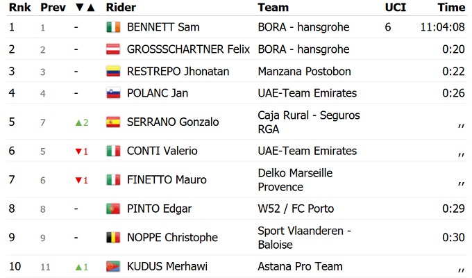 Лидерство в общем зачете удерживает Сэм Беннетт