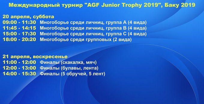 20-го и 21-го апреля в Баку состоится «AGF Junior Trophy 2019», где выступят украинские спортсменки.