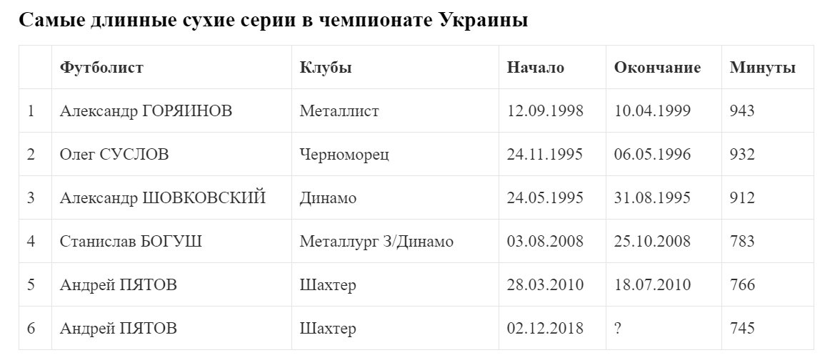 Вратарь «Шахтера» Андрей Пятов держит ворота на замке в восьми матчах чемпионата подряд. Если быть более точными, то 745 минут.