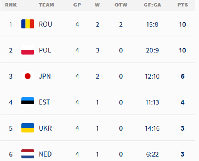 Украина и Нидерланды набрали по 3 очка и замыкают таблицу, но у нашей сборной преимущество за счет победы в личной встрече.