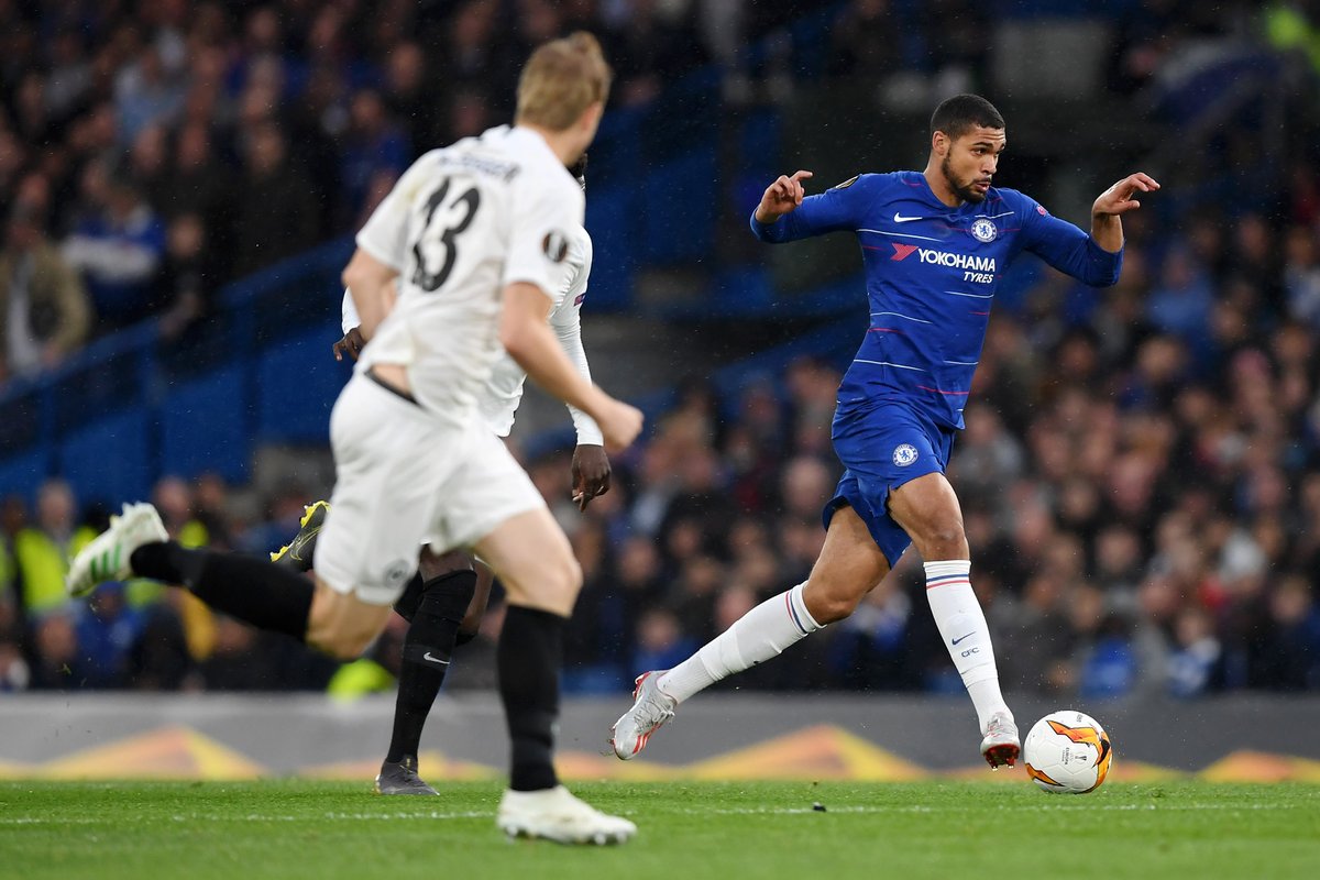 28 мин. ГГГООООООООООЛЛЛ!!! Гол забил Лофтус-Чик - 1:0 !!! И все-таки хозяева поля добились своего. Лофтус-Чик слева ворвался в штрафную площадку «Айнтрахта» и четко пробил в дальний угол мимо Траппа.