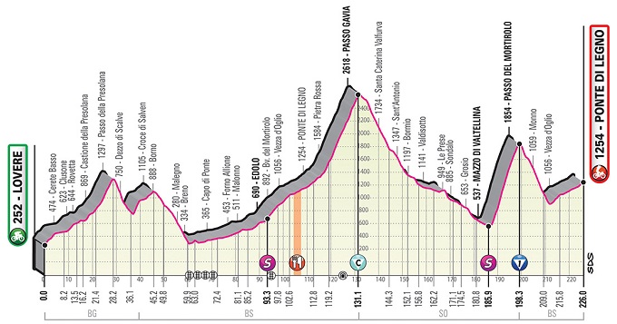 Горный этап после второго дня отдыха – это всегда коварно. Некоторым гонщикам тяжело вернуться в гоночный ритм, и это сулит им большие потери в общем зачете. Тем более, когда этап будет запредельно сложным. Гонщики столкнутся с классической для Джиро связкой Пассо ди Гавия – Мортироло. Гавия будет Чимой Коппи этой Джиро – самой высокой точкой маршрута, 2618 м над уровнем моря.