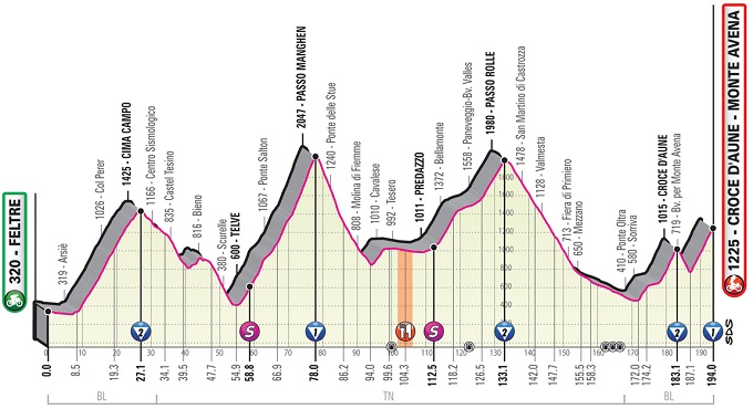 В предпоследний день Джиро гонщиков ждет решающая битва в Доломитах. Три тяжелых перевала (Чима Кампо, Пассо Манген и Пассо Ролле) и финальный подъем на Кроче д’Ауне с довольно сложными последними 4 км. Из предыдущих перевалов самым сложным будет Пассо Манген: 23,4 км со средним градиентом 7% и очень тяжелыми последними 6 км дистанции, на которых крутизна будет составлять почти 10%. Конечно, финальную разделку в Вероне не стоит забывать, но, с большой долей вероятности, судьба победы на Джиро решится именно на 20-м этапе.