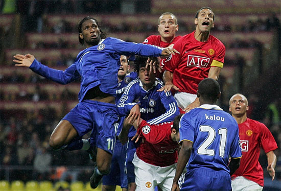 Дидье Дрогба еще найдет применение своей правой руке (мимика центрбеков МЮ, как всегда, впечатляет).