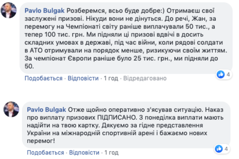 Советник министра молодежи и спорта Украины Павел Булгак отреагировал на обращения борца Жана Беленюка о невыплате призовых за победу на чемпионате Европы-2019 в Бухаресте.