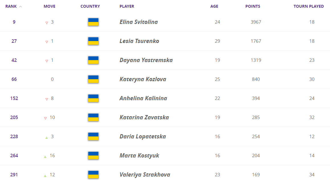 Рейтинг WTA. Свитолина опустилась на девятое место
