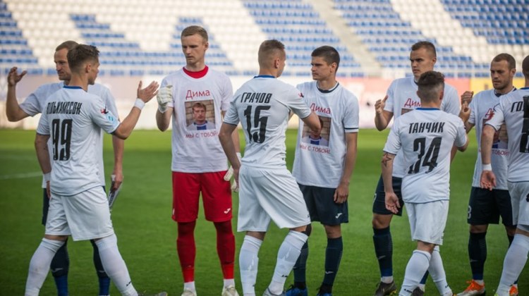 Игроки «Олимпика» на матч против «Черноморца» вышли в футболках в поддержку бывшего игрока и тренера клуба Дмитрия Логвинова, который борется с онкозаболеванием.