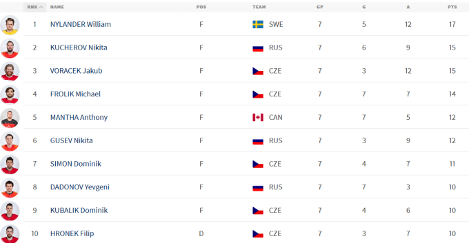 Во вторник на чемпионате мира по хоккею завершился групповой этап. По его итогам лучшим бомбардиром пока что является форвард сборной Швеции Вильям Нюландер.
