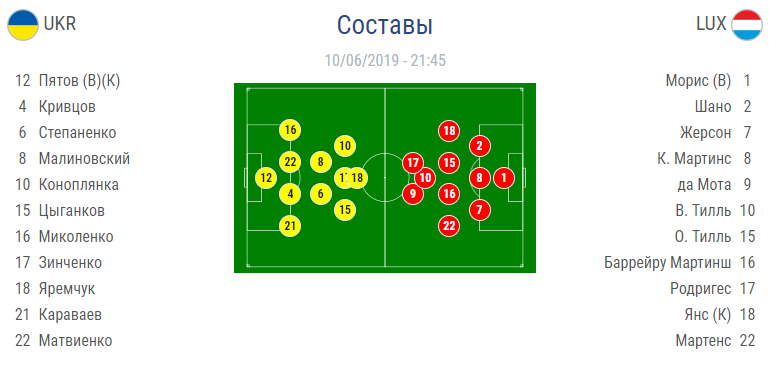 Стали известны стартовые составы сборных Украины и Люксембурга, которые в понедельник, 10-го июня, сыграют на «Арене Львов» в рамках отбора к Евро-2020.