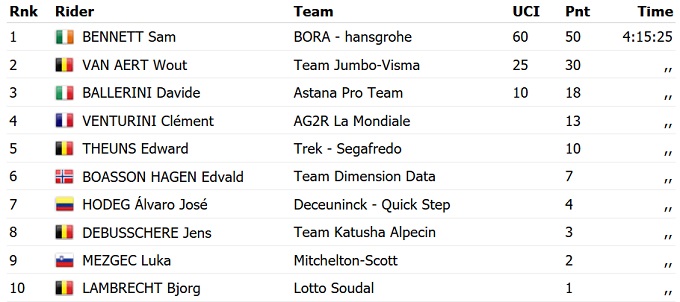 Ирландский спринтер Bora Hansgrohe Сэм Беннетт выиграл третий этап многодневки Дофине-2019. Лидером общего зачета остался бельгиец Дилан Тейнс из Bahrain Merida.