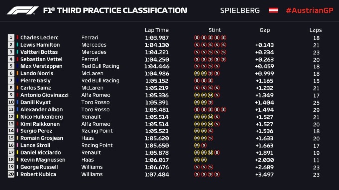 Лучшее время установил пилот Феррари Шарль Леклер, который опередил Льюиса Хэмилтона на 0,1 секунди.