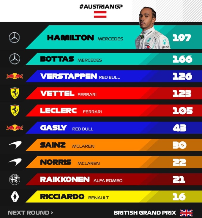 Успех Ферстаппена позволил ему опередить гонщиков Феррари и подняться в топ-3 общего зачета. Судя по всему, Макс, Феттель и Леклер поведут борьбу за 3-е итоговое место.