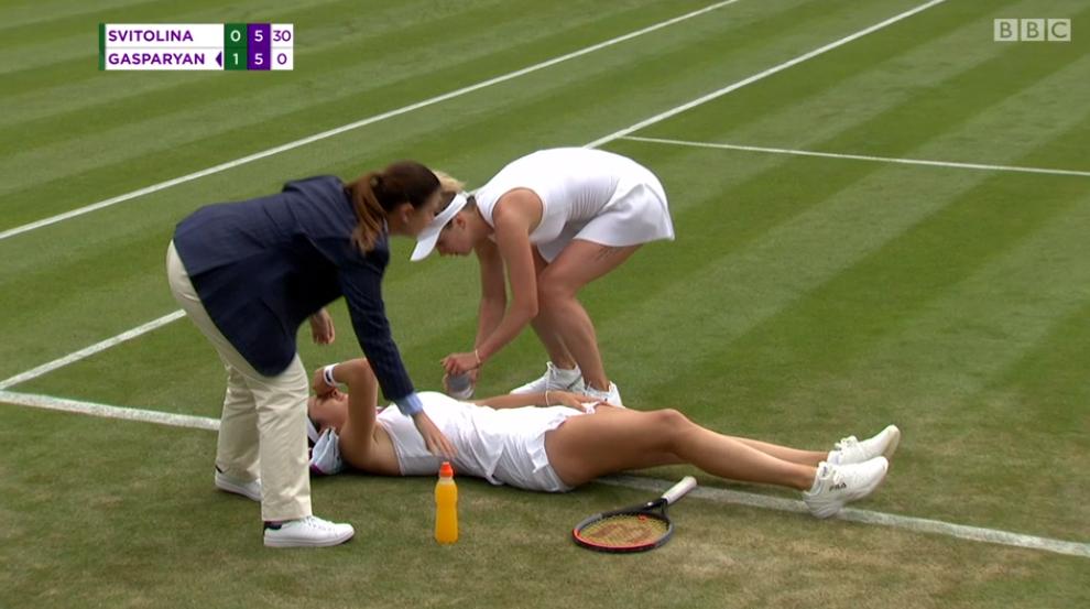 Развязка встречи состоялась после счета 5:5. Гаспарян вышла на подачу, но при счете 0:30 дернула мышцу левой ноги. Поначалу показалось, что это судорога, но видимо, там все гораздо серьезнее. Несколько минут она пролежала на корте, так как медицинский тайм-аут во время гейма брать нельзя. После консультации с физиотерапевтом россиянка продолжила, но гейм проиграла. Элина один раз проверила ее укороченным, Маргарита бежать не могла.