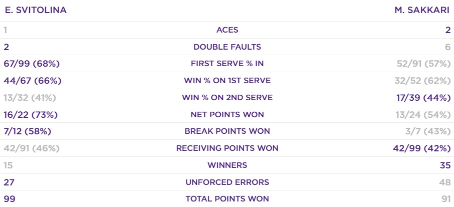 Элина Свитолина (Украина) – Мария Саккари (Греция) – 6:3, 6:7(1), 6:2