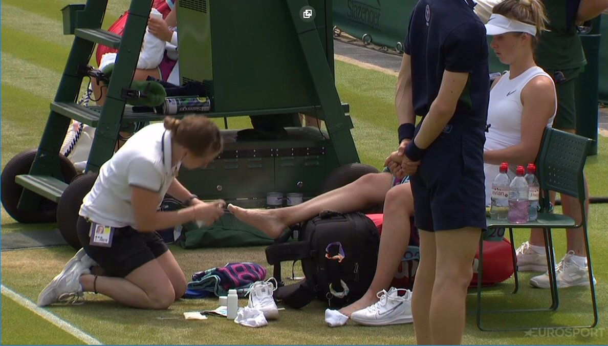 Третий сет начинали с нуля и первой брейканула как раз украинка. После пятого гейма Свитолина взяла медицинский тайм-аут, вероятно ее беспокоила мозоль на ноге.