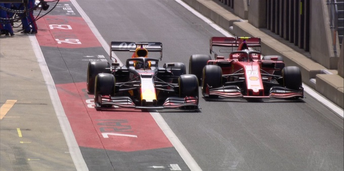 Топ-5 составляли Леклер, Ферстаппен и Феттель. Пока между ними шла борьба, к Феттелю подьехал Гасли и опередил его! У Феррари явно проблемы на этом треке, Ред Булл попросту быстрее. Тем временем Леклер и Ферстаппен поехали на пит одновременно! И на пит-стопе Быки сработали лучше, поэтому Ферстаппен сумел опередить Шарля! Однако после возвращения на трассу Макс потерял сцепление с треком и Леклер вернул себе третью позицию. Эпичная битва, и Леклер явно не забыл, что случилось в Австрии.