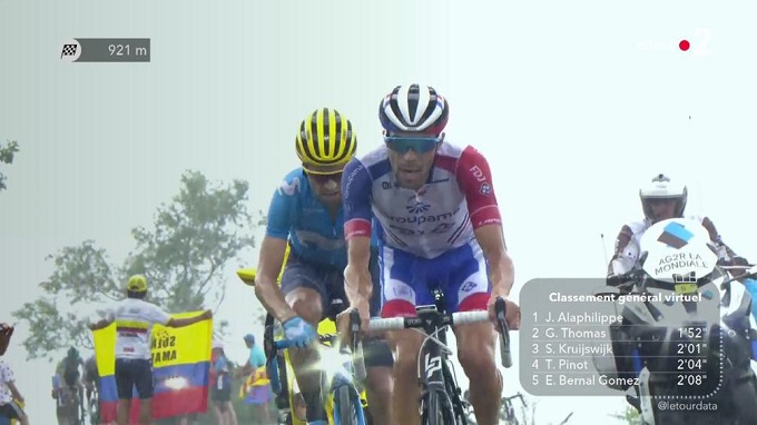 Хорошая готовность Пино была видна еще на первом горном финише на Планш де Бель Фий на шестом этапе, где он заехал вторым из генеральщиков, проиграв всего 2 секунды Герэйнту Томасу, а после этого устроив еще и парную атаку с Жулианом Алафилиппом на холмистом восьмом этапе. После этого Тибо выдал невероятно сильную вторую неделю. Сначала он занял 7-е место в разделке в По, проиграв всего 49 секунд победителю, Жулиану Алафилиппу. Прорыв в разделках у Пино случился еще в 2016 году, однако сильные выступления в индивидуальной гонке француз выдавал только на недельных гонках, в то время как на Гран Турах постоянно их проваливал. В пятницу капитан Groupama FDJ наконец-то сумел раскрыть весь свой потенциал в разделках в рамках Гран Тура.