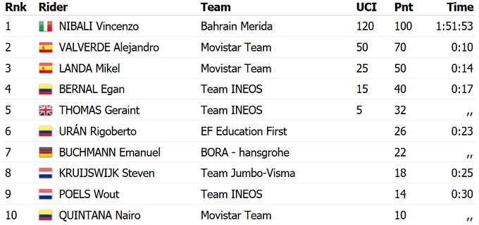 20-й этап выиграл Винченцо Нибали