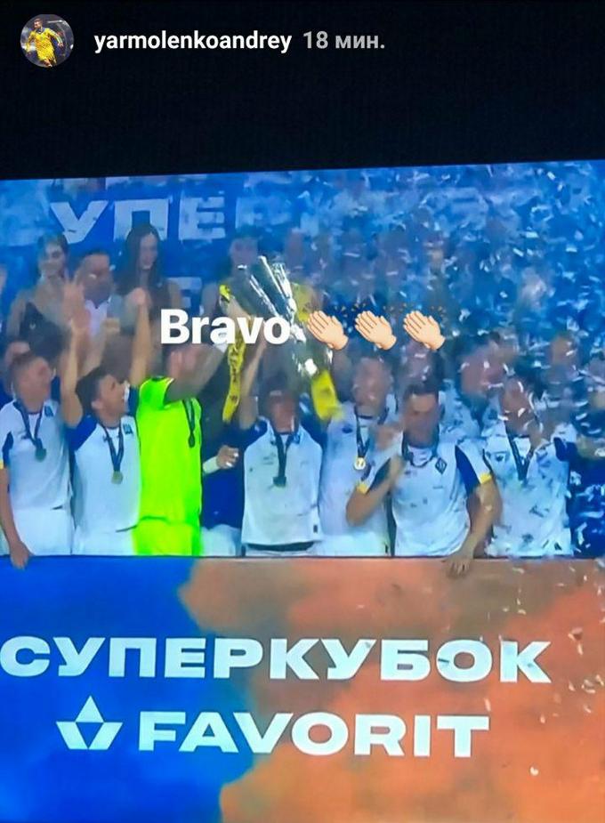 «Браво», — лаконично написал Ярмоленко в Instagram.