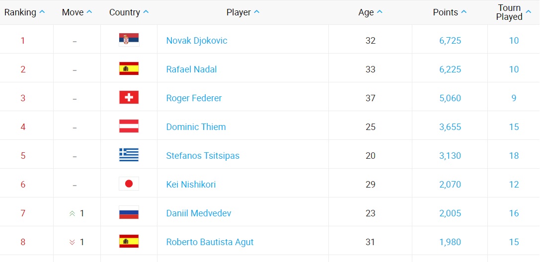 В Чемпионской гонке Даниил Медведев и Роберто Баутиста-Агут поменялись местами.