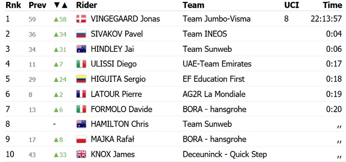 22-летний датский гонщик Jumbo Visma Йонас Вингегор сенсационно выиграл шестой этап Тура Польши, опередив Павла Сивакова и Джея Хиндли. Этот успех позволил Вингегору выйти в лидеры общего зачета за день до завершения многодневки.